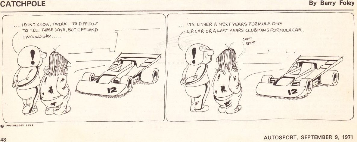 Artist whose cartoons have appeared in Autosport magazine since the 1960's. Also paints and works in three dimensions in wood and stone. Designed the black and gold JPS logo scheme for Lotus together with the livery for other racing teams .