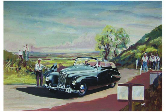 Four gouache paintings of Rootes cars seen. Was a noted painter of equestrial subjects.