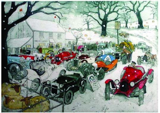 Work featured in Classic and Sportscar magazine in January 2000 issue. Slightly naïve style likes working in mezzotint, aquatint and pastel. Regular exhibitor at motoring art exhibitions.