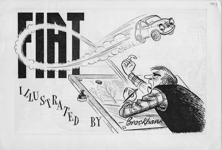 Cover design of publicity cartoon brochure for Fiat cars