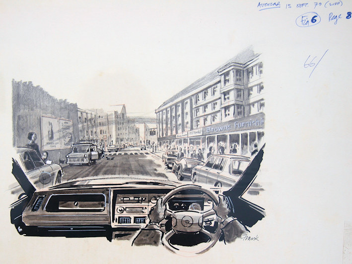 Assume that Frank is a psuedonym not a surname? The only art noted is a series of Road Safety illustrations for The Autocar in 1979. These were for a series titled 'AT RISK'. Very much in the style of Gordon Horner who did similar called 'LOOK OUT' in the 1960's.