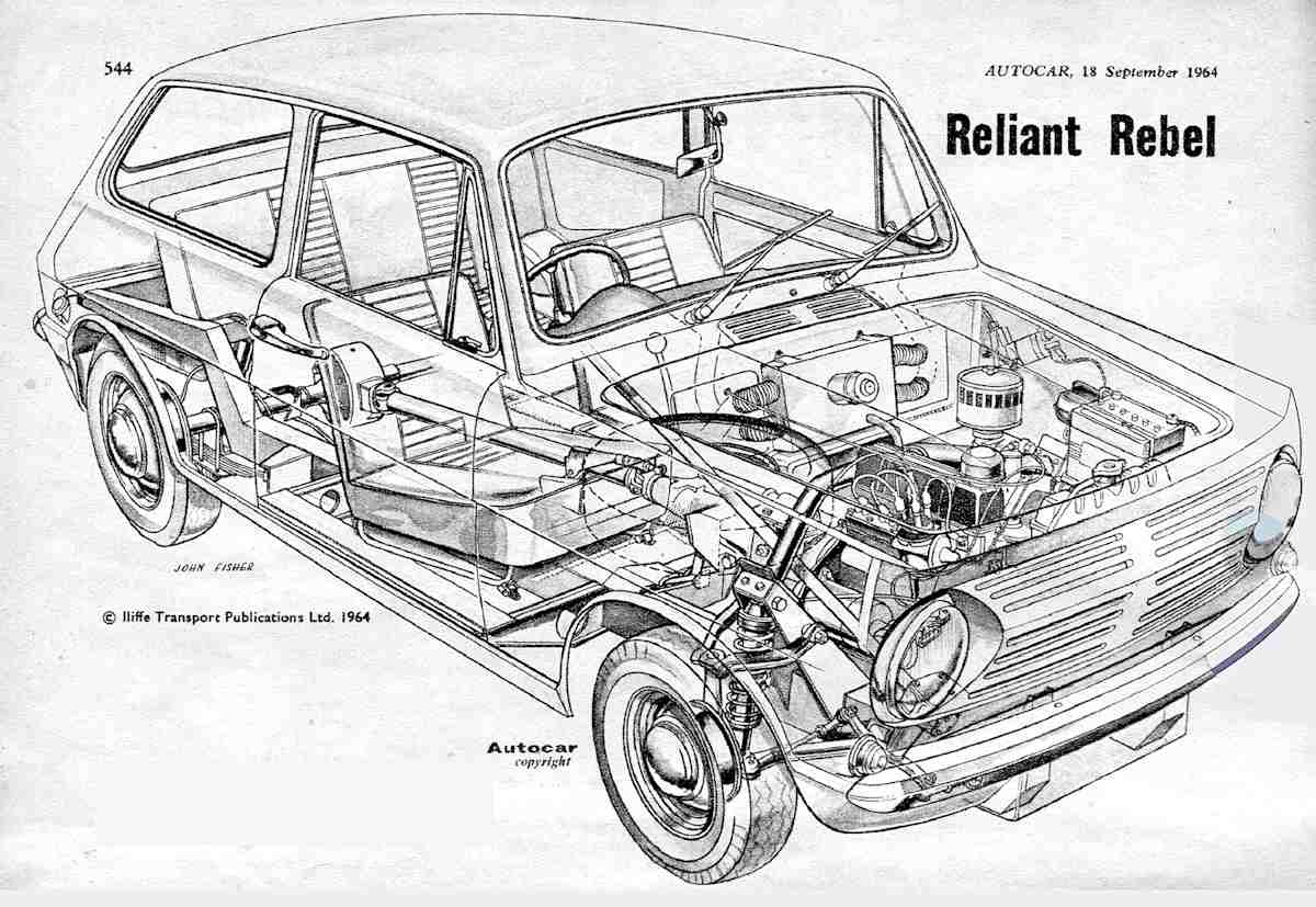 Reliant Robin. Autocar cutaway Sept 1964