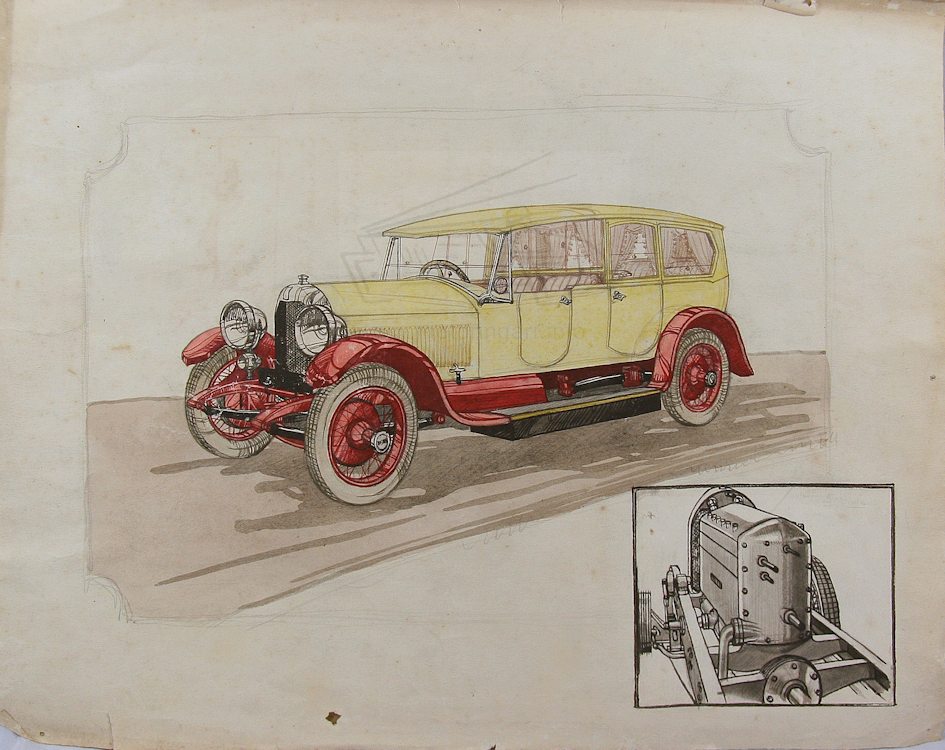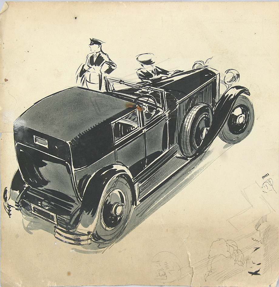 Drawing of Vauxhall car signed Cyril Freese