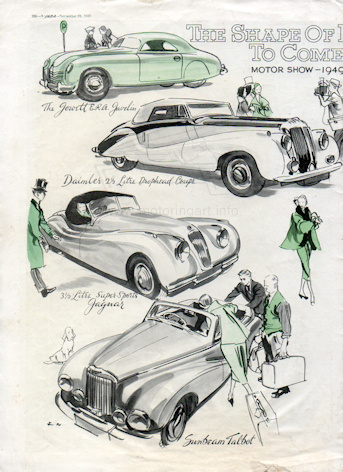 illustrations of the 1949 Motor Show in Sketch magazine
