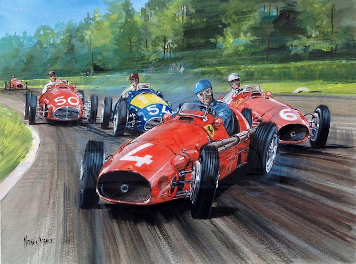 Albert Ascari Ferrari F1, spinning on the last lap of the Italian GP Monza 1953