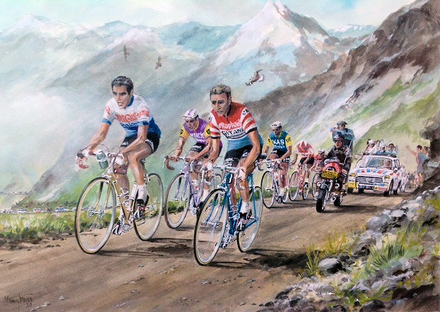 1964 Tour de France, with l to r Frederico Bahamonters, Raymond Polidor, and eventual winner Jaqueline Anquetil, somewhere in the Pyrenees. With 3 days to go.