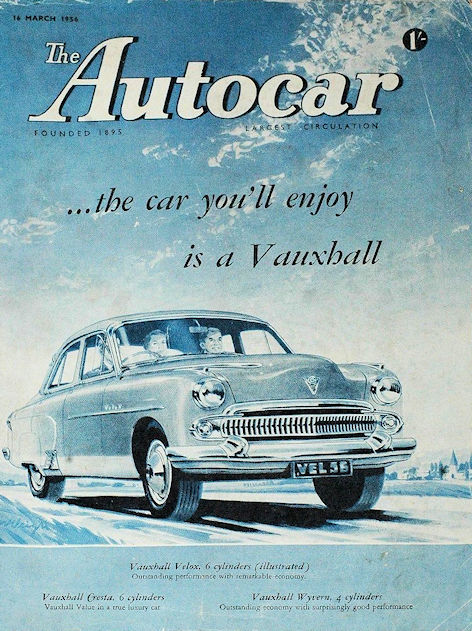 Autocar front cover design March 1956. Vauxhall Velox advertisement