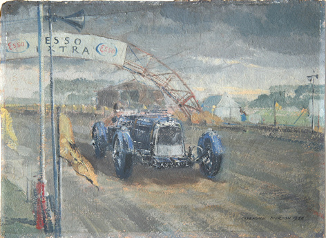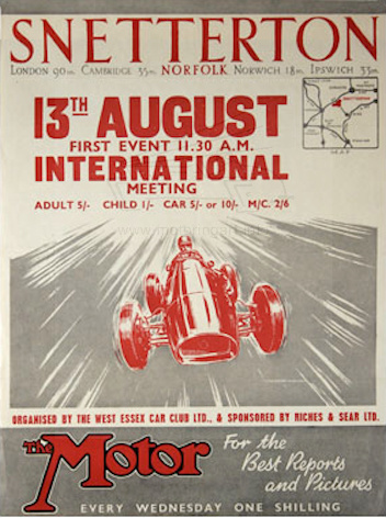Was Chairman of Snetterton Motor Racing Club and designed the poster for the 1957 six hour race. Morton also designed bodies for Tojeiro racing cars. For a couple of good examples of his work dated 1954 see lots 15 & 16 in Christie’s sale 29th March 1999. Many programme/poster designs for Snetterton circuit. Famous landscape artist in later life.