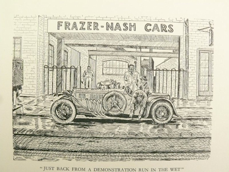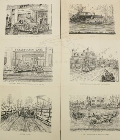 W H Aldington for Frazer-Nash commissioned a set of six cartoons from this artist in circa 1935. Reproductions were distrubuted to clients and used for other publicity purposes.