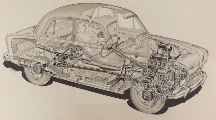 Technical/cutaway artist worked for The Motor and The Light Car magazines prior to the war. Exhibited as a Temple Press artist in the exhibition at the Rembrandt Rooms 5th October 1941